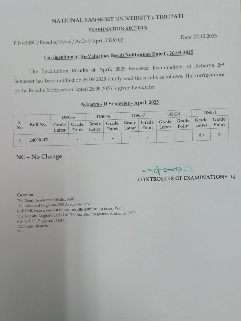 ⇒ Revaluation Result Notification: Acharya – I Semester – December, 2024